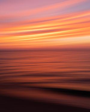 A pan blur at sunset looking northwest from the south shore of the Great Peconic Bay.