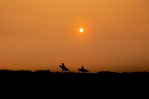 Running to the surf underneath a hazy sun. Ponquogue Beach, NY. Autumn 2020.